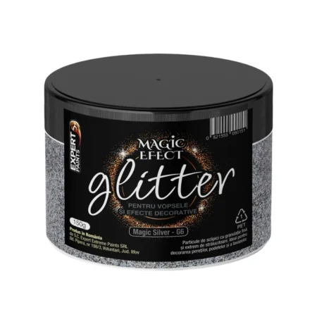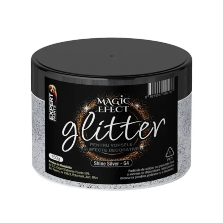 Glitter Magic Effect oferă strălucire intensă și efecte decorative premium pentru vopsele, pereți, mobilier și obiecte decorative. Disponibil în 12 culori.