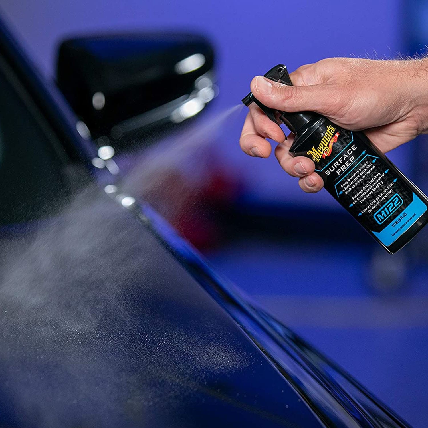 Pasul 1 – Degresarea: Pulverizați Meguiar’s Surface Prep direct pe vopsea. Ștergeți imediat cu o lavetă din microfibră pentru a îndepărta complet orice urmă de grăsime sau praf. Lucrați panou cu panou.