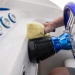 Ștergere/Masare: Masați soluția pe suprafața din vinyl sau cauciuc pentru a disloca murdăria și a forța balsamul să intre în pori.