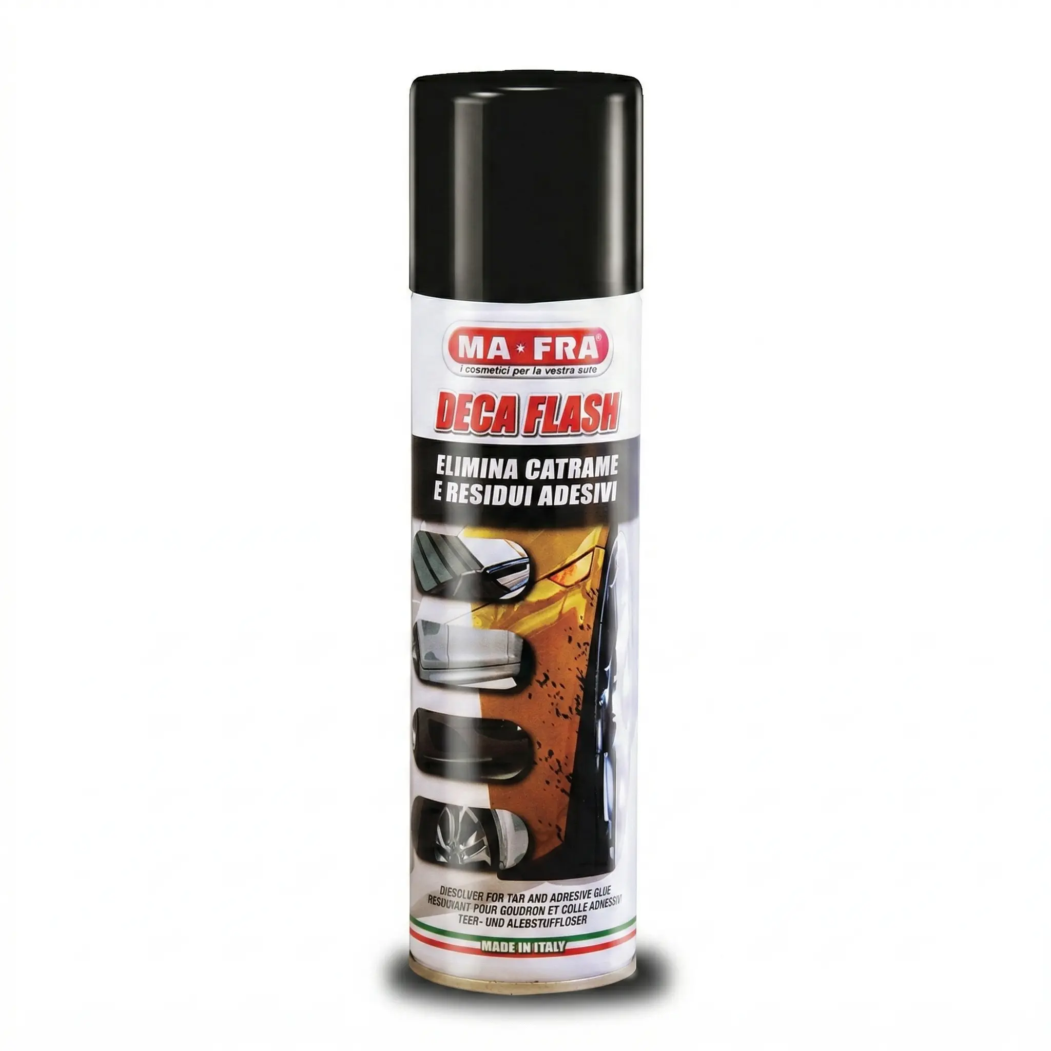 Elimină instantaneu petele de bitum, gudronul și resturile de adeziv cu spray-ul MA-FRA Deca Flash (250ml). Solvent extrem de eficient, sigur pentru vopsea și lac!