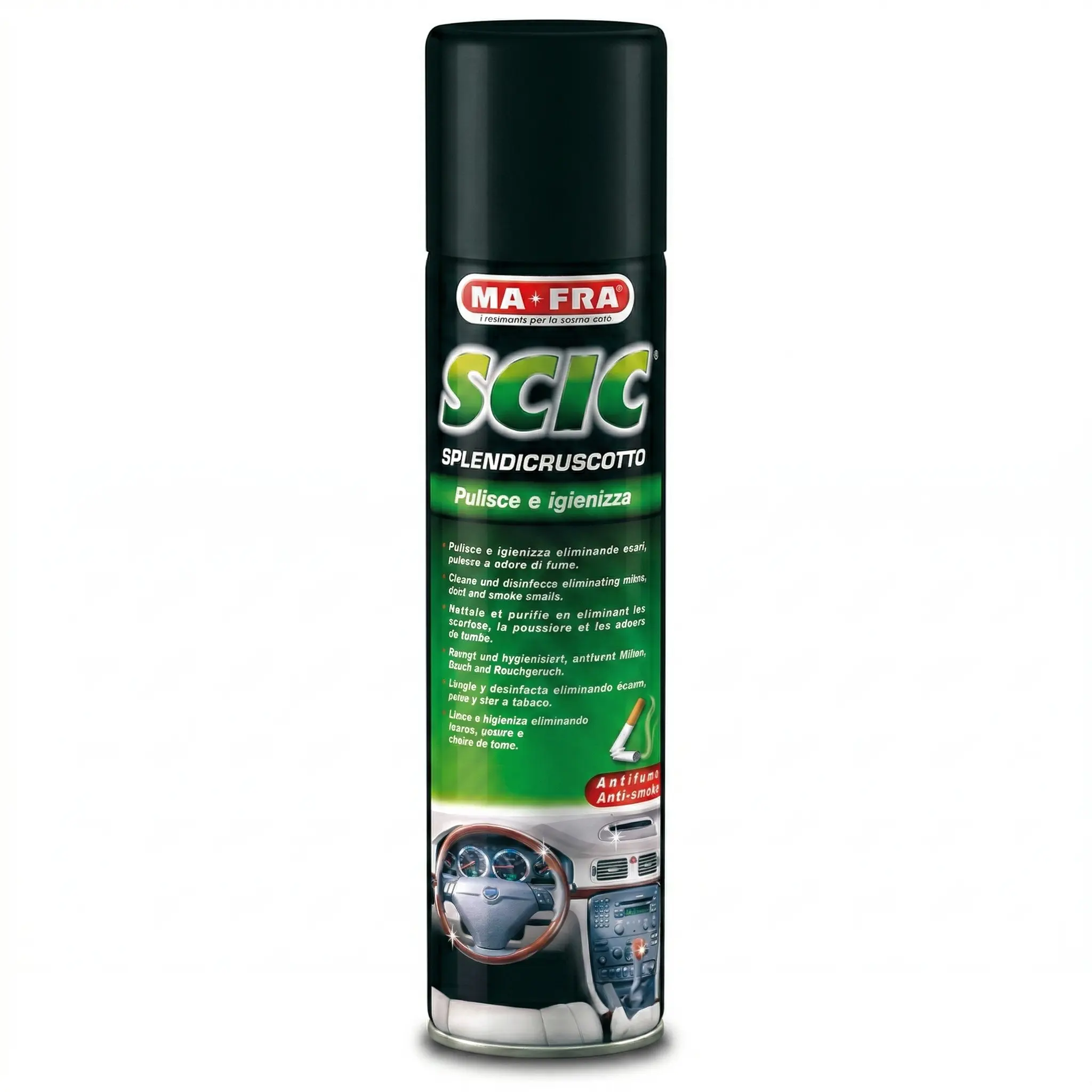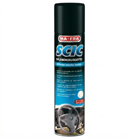 Restabilește aspectul natural, de fabrică, al plasticelor interioare cu spray-ul pentru bord MA-FRA Scic Green (600ml). Finisaj mat fără reflexii, efect antistatic și protecție UV.