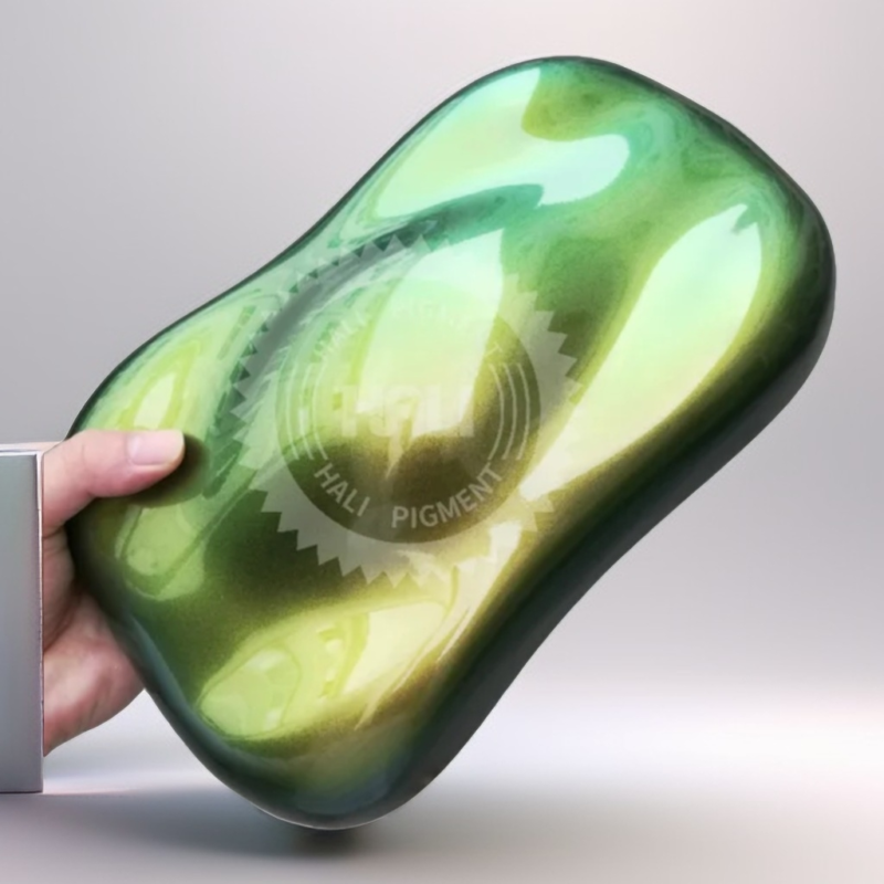 Vopseaua auto cu efect cameleon isi schimba culoarea in functie de unghiul de vizualizare si de lumina, oferind reflexii irizate intense si un efect sidefat spectaculos. Combinatia de nuante turcoaz, verde si auriu creeaza un impact vizual puternic, ideal pentru caroserii auto, proiecte de design personalizat, mobilier sau obiecte decorative.
